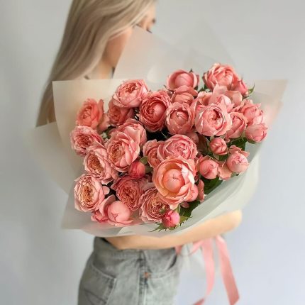 Евро-Букет из Роз Quicksand и Кустовой розы + открытка ручной работы в подарок