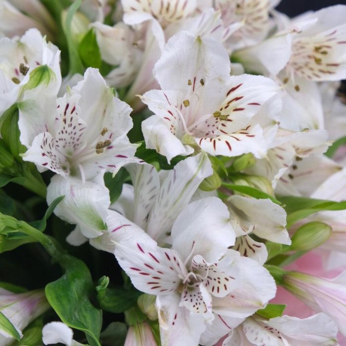Альстромерия – 21 шт.Шляпная коробка – 1 шт.подкормка для срезанных цветов – 1 шт.инструкция по уходу за цветами – 1 шт.