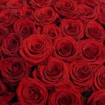 червона троянда – 101 шт. стрічка бархатна – 1 шт.
