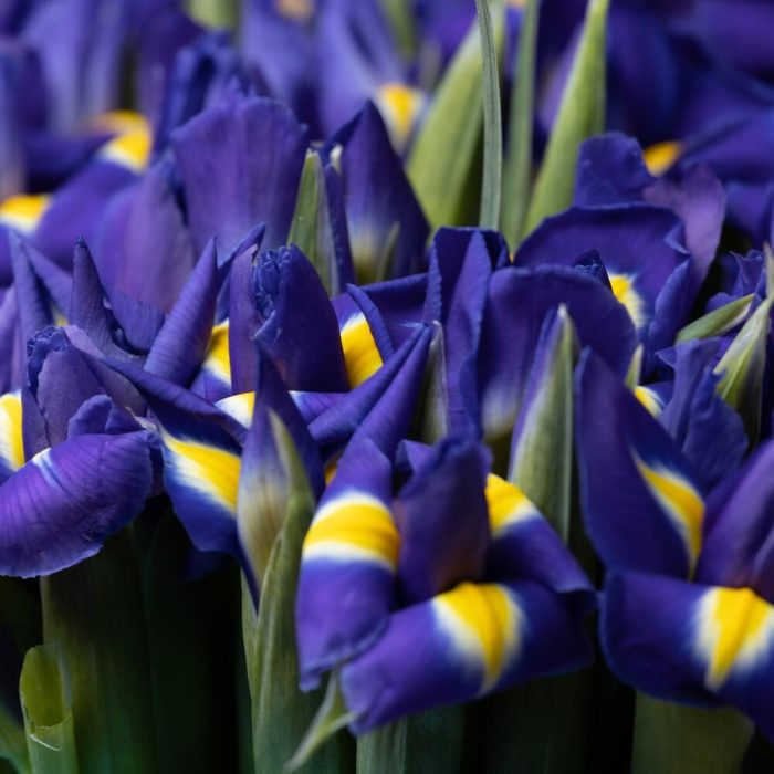 Ирис – 51 шт.Корзина плетеная – 1 шт.Лента атласная – 1 шт.Открыточка с вашими пожеланиями – 1 шт.хорошее настроение – 100 шт.инструкция по уходу за цветами – 1 шт.Кризал – 1 шт.
