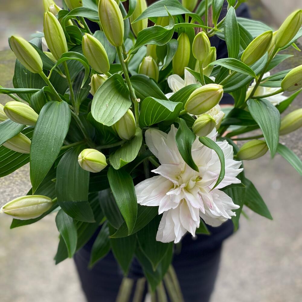Лента атласная – 1 шт.Открытка мини – 1 шт.лилия махровая премиум – 5 шт.
