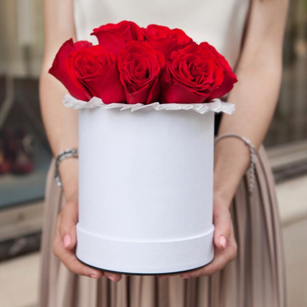 розы – 9 шт.Шляпная коробка – 1 шт.