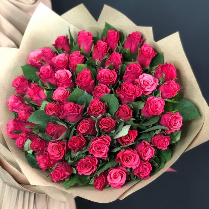 Роза – 51 шт.Крафт упаковка – 3 шт.