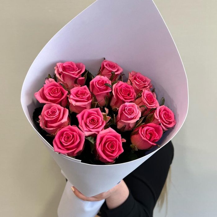 Роза – 15 шт.Лента атласная – 1 шт.Упаковка дизайнерская – 1 шт.