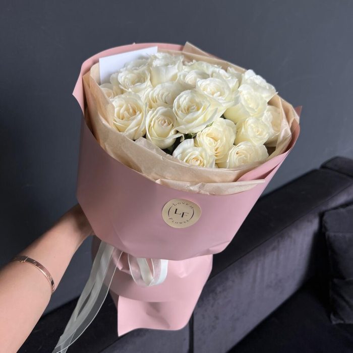 Роза 70 см – 23 шт.Пленка матовая – 1 шт.тишью кремовая хрустящая – 1 шт.