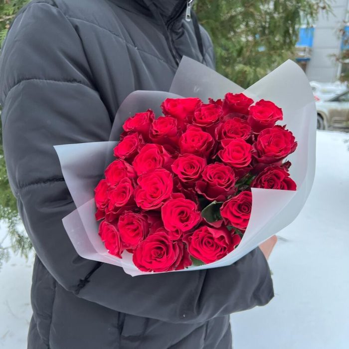 Роза красная 40 см – 25 шт.Пленка матовая – 2 шт.