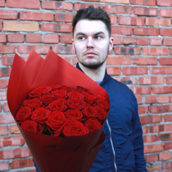 Букет из 25 красных роз длиной 40 см