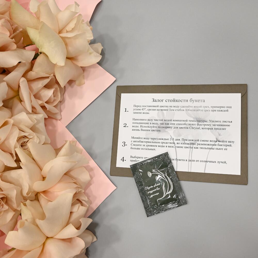 - Сроки возврата: Претензии по качеству букета принимаются в течение 24 часов с момента его получения.