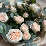 Букет из кустовой пионовидной розы Джульетта, маттиолы и диантуса