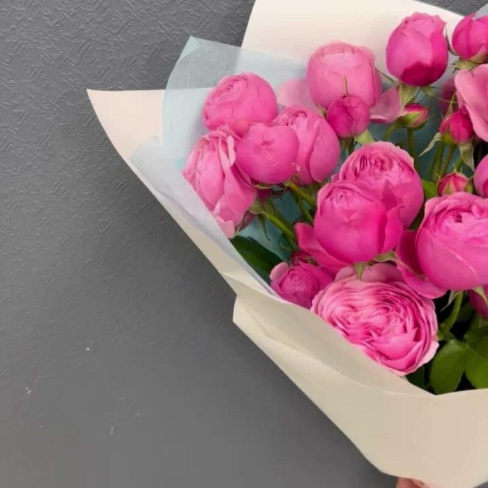 Тишью – 2 шт.Роза пионовидная кустовая – 5 шт.Пленка матовая – 2 шт.