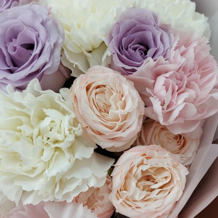 Роза – 9 шт.роза кустовая премиум – 4 шт.гвоздика сортовая (диантус) – 13 шт.Пистация – 5 шт.Упаковка дизайнерская – 1 шт.