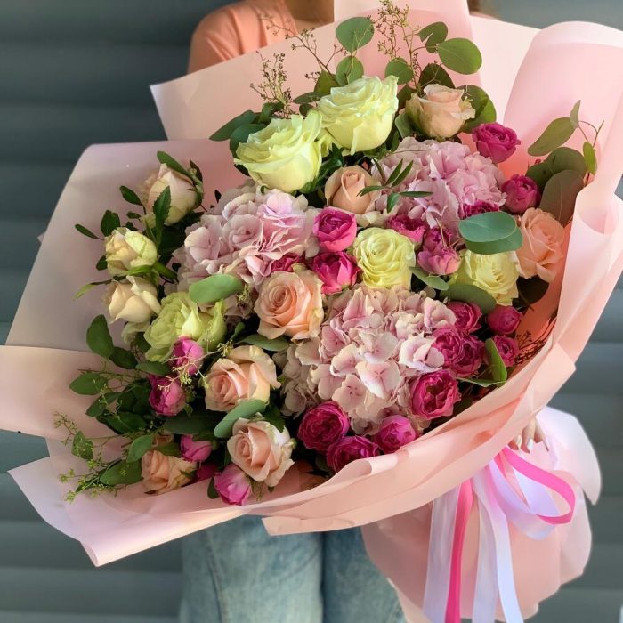 Гортензии, Кустовые розы, Лизиантусы, Пионовидные розы, Розы