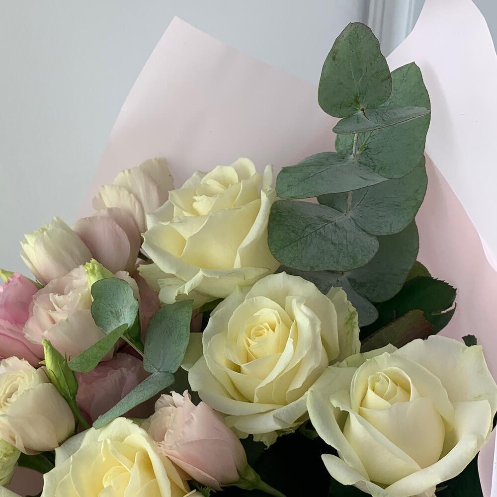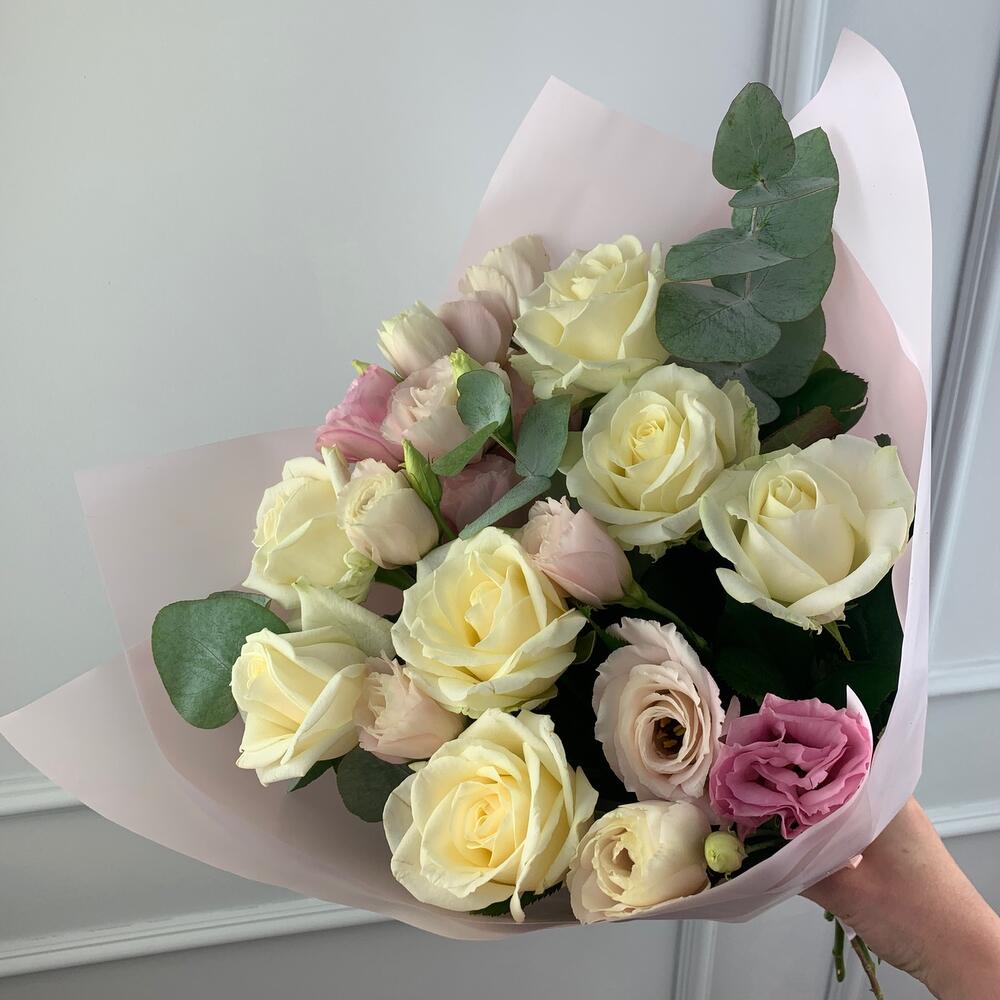 Букет «Розы и лизиантусы»