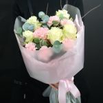 Букет кустовая роза с эвкалиптом