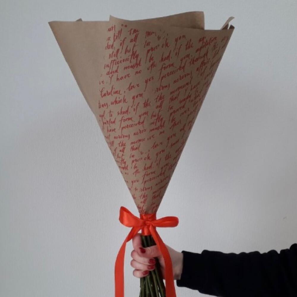 Лента атласная – 2 шт.Роза Эквадор 60 см – 21 шт.Крафт упаковка – 2 шт.