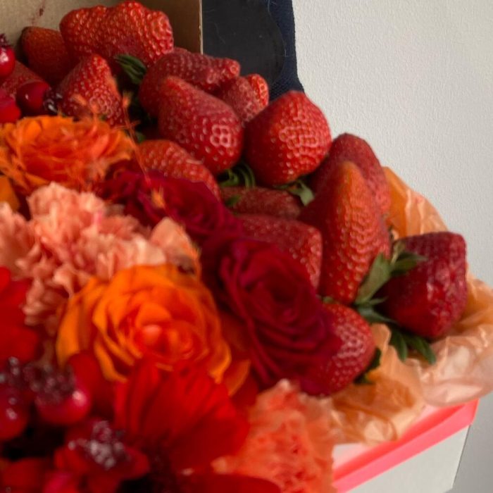 Цветы в коробке в клубникой