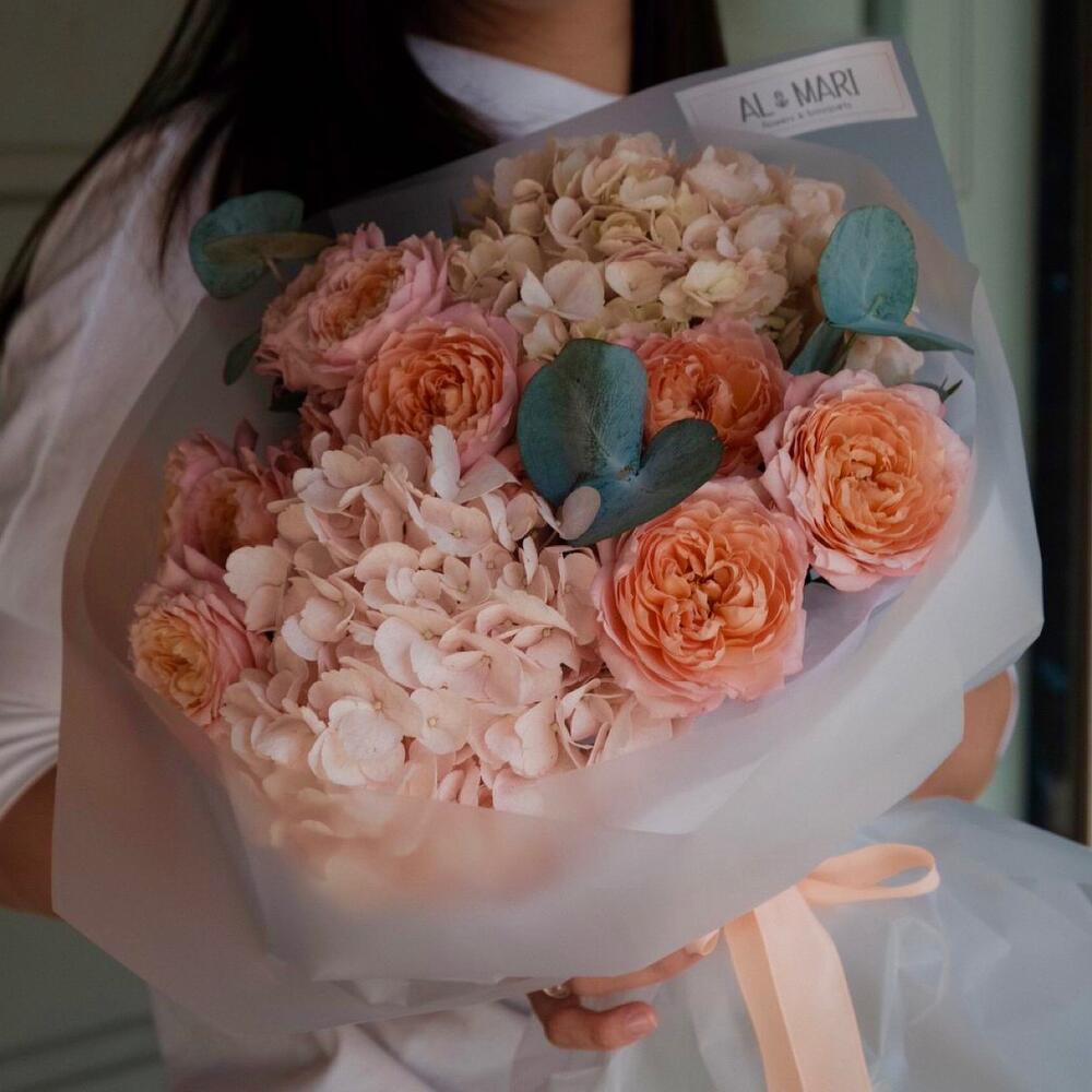 Гвоздики, Кустовые розы, Лизиантусы, Пионовидные розы, Розы