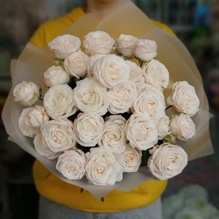 Кустовые розы нежно персиковые/белые