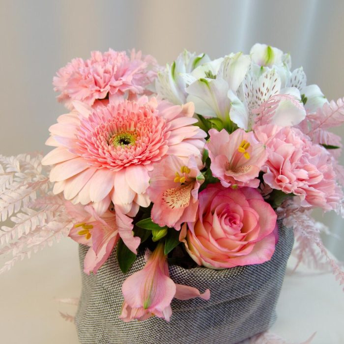 Альстромерии, Гвоздики, Кустовые розы, Лизиантусы, Розы, Хризантемы