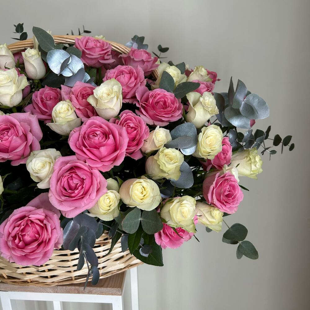Гвоздики, Кустовые розы, Лизиантусы, Пионовидные розы, Розы