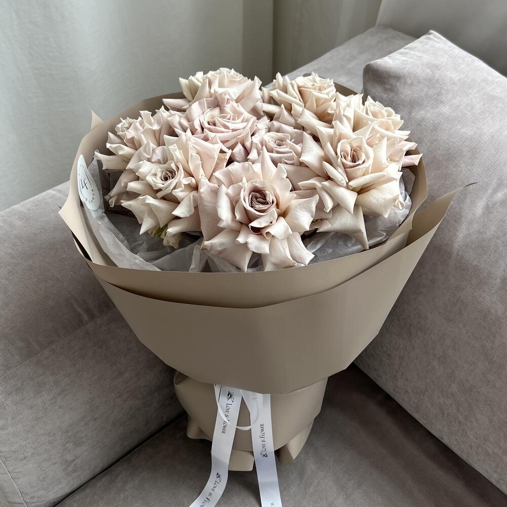 Роза menta – 9 шт.тишью хрустящая – 1 шт.пленка матовая пудровая – 1 шт.