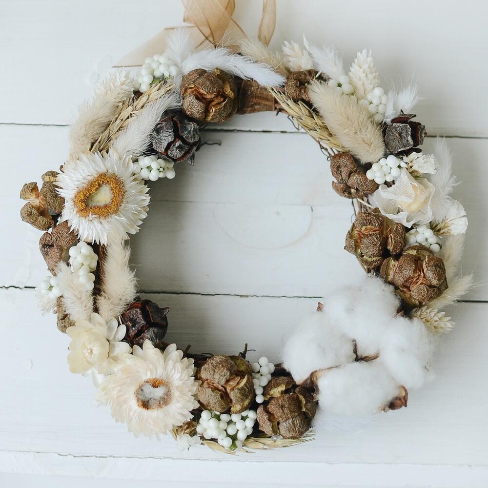 Венок из сухоцветов в натуральных оттенках