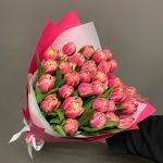 Лента атласная – 1 шт.Тюльпан пионовидный – 31 шт.Упаковка дизайнерская – 2 шт.